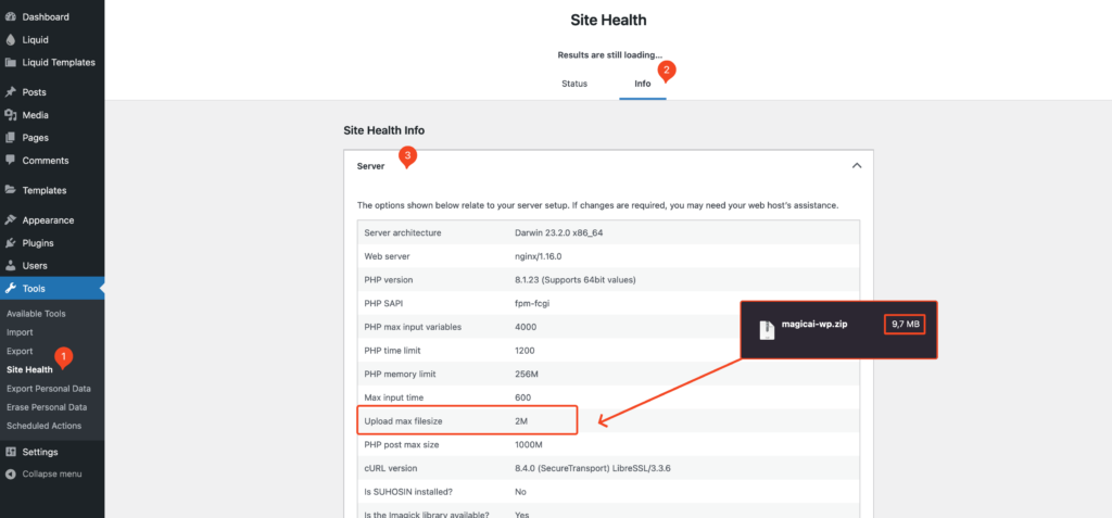 upload_max_filesize value. This is because the plugin’s zip size cannot exceed the upload_max_filesize limit. If you don’t have access to the PHP configuration of your server, or your hosting provider refuse to do so, you can try to set these values through the .htaccess file: